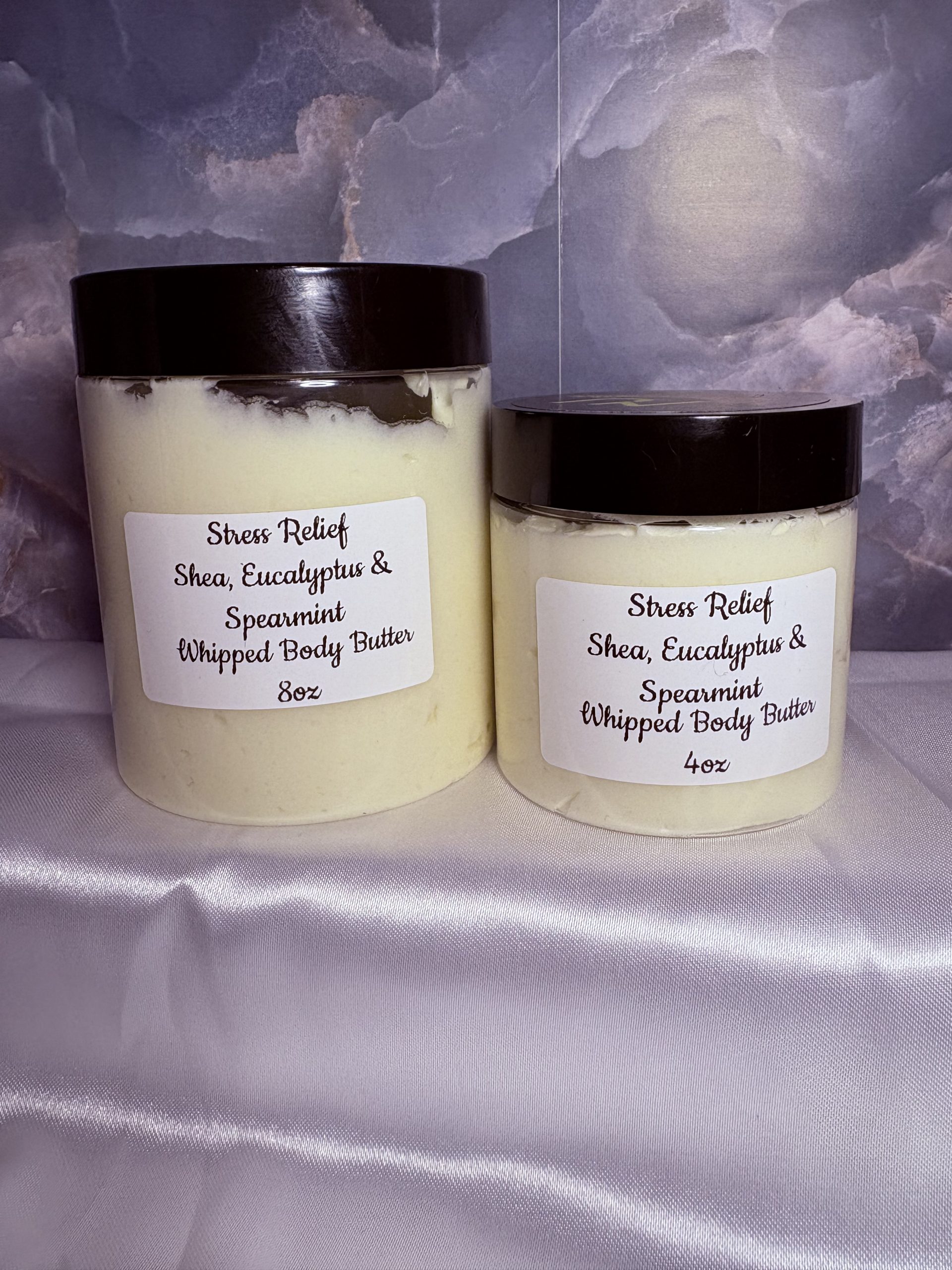 Refresh your senses and restore your skin with our Stress Relief Shea Body Butter, a soothing blend created to calm the mind while deeply nourishing the body. Made with rich, creamy shea butter, lightweight grapeseed oil, and restorative vitamin E oil, this formula melts instantly into the skin, delivering long-lasting moisture and a smooth, silky finish.